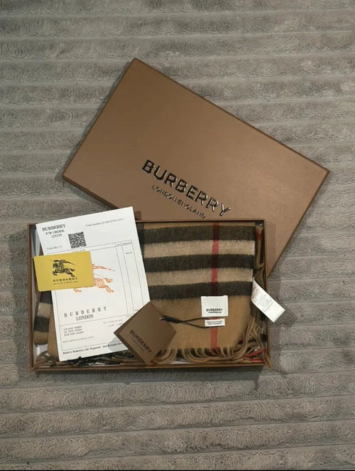Burberry Cashmere Check Rectangle Scarf Beige Black Red.